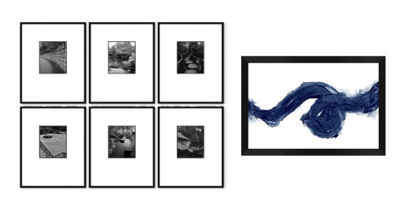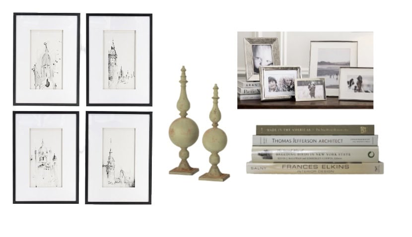 You may use placeholder items in the initial design until you find the ideal item. Examples include frames with basic prints that can be changed for original artwork later or simple accessories you plan to replace with items from travel, thrifting, or antiquing.